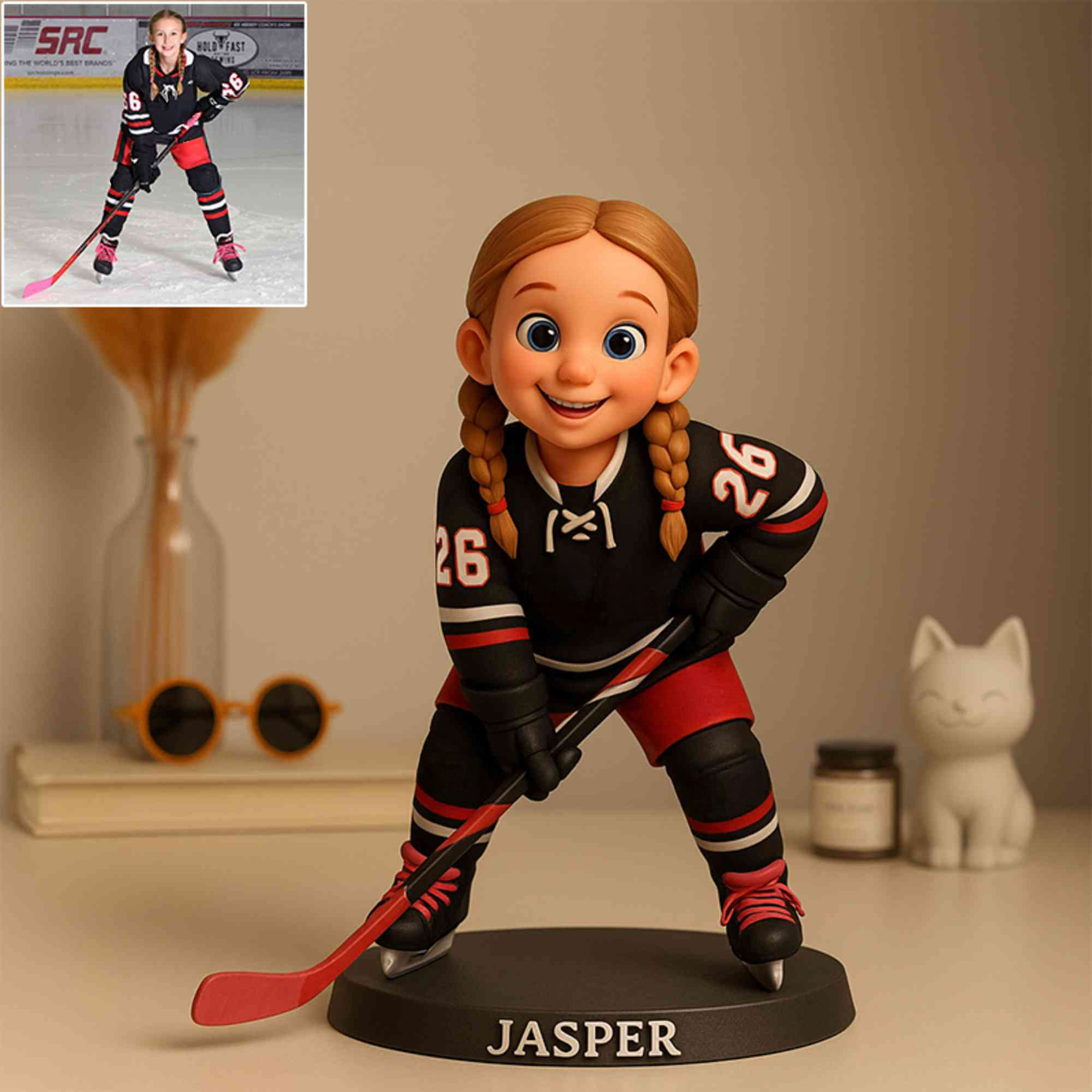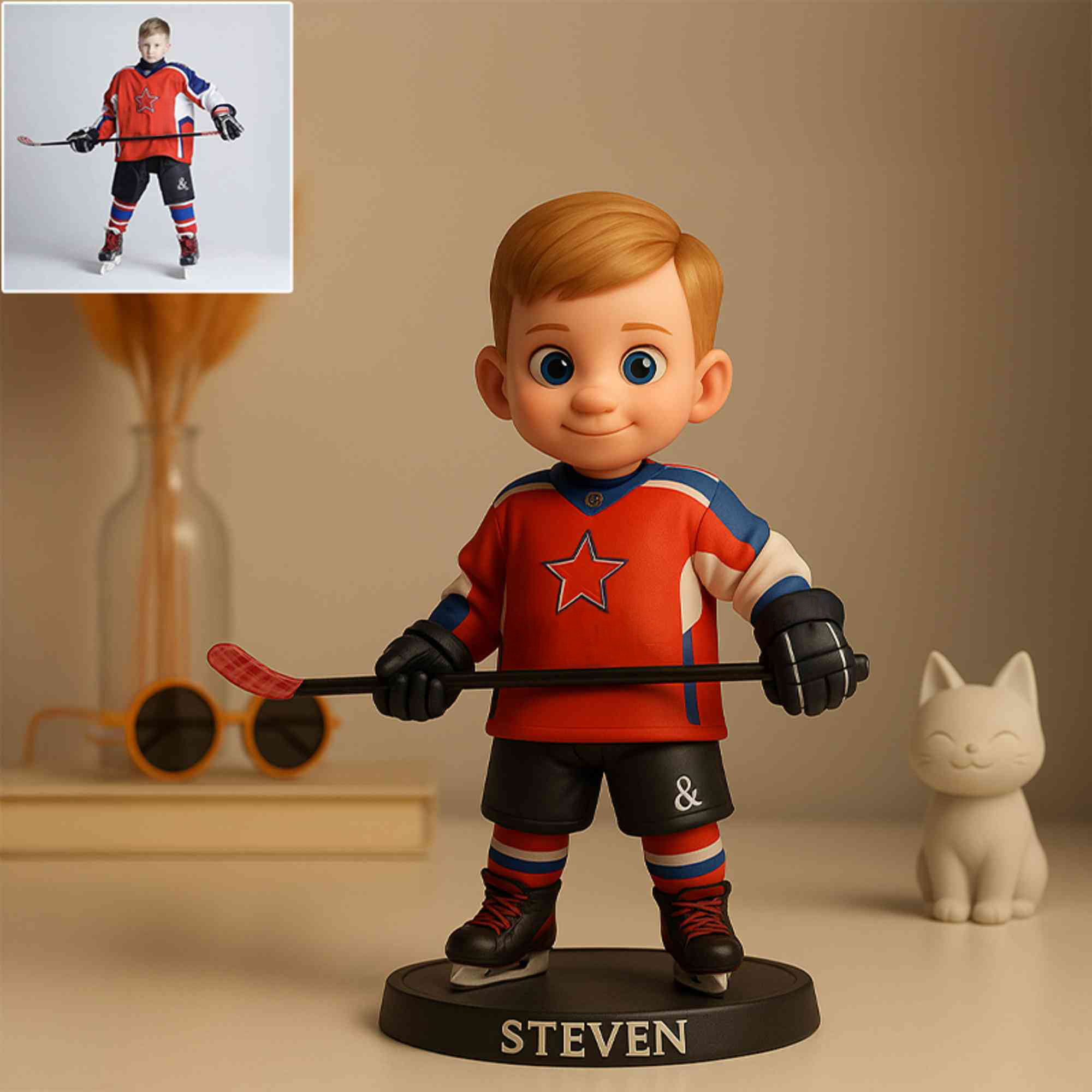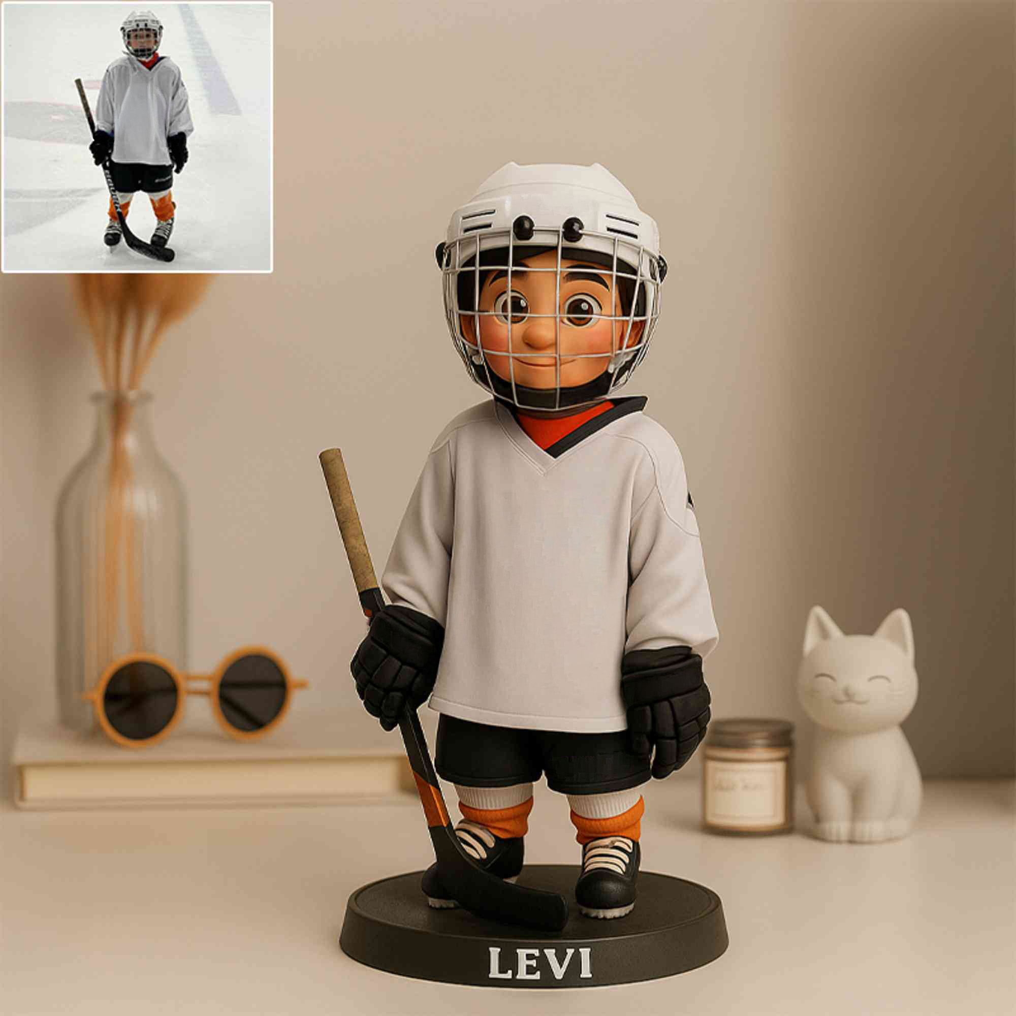 🏒 Celebrate your passion for ice hockey with our Custom Ice Hockey Photo Cartoon Style Figure! This unique desk decor piece transforms your favorite ice hockey photo into a vibrant cartoon-style figure, complete with a personalized name.