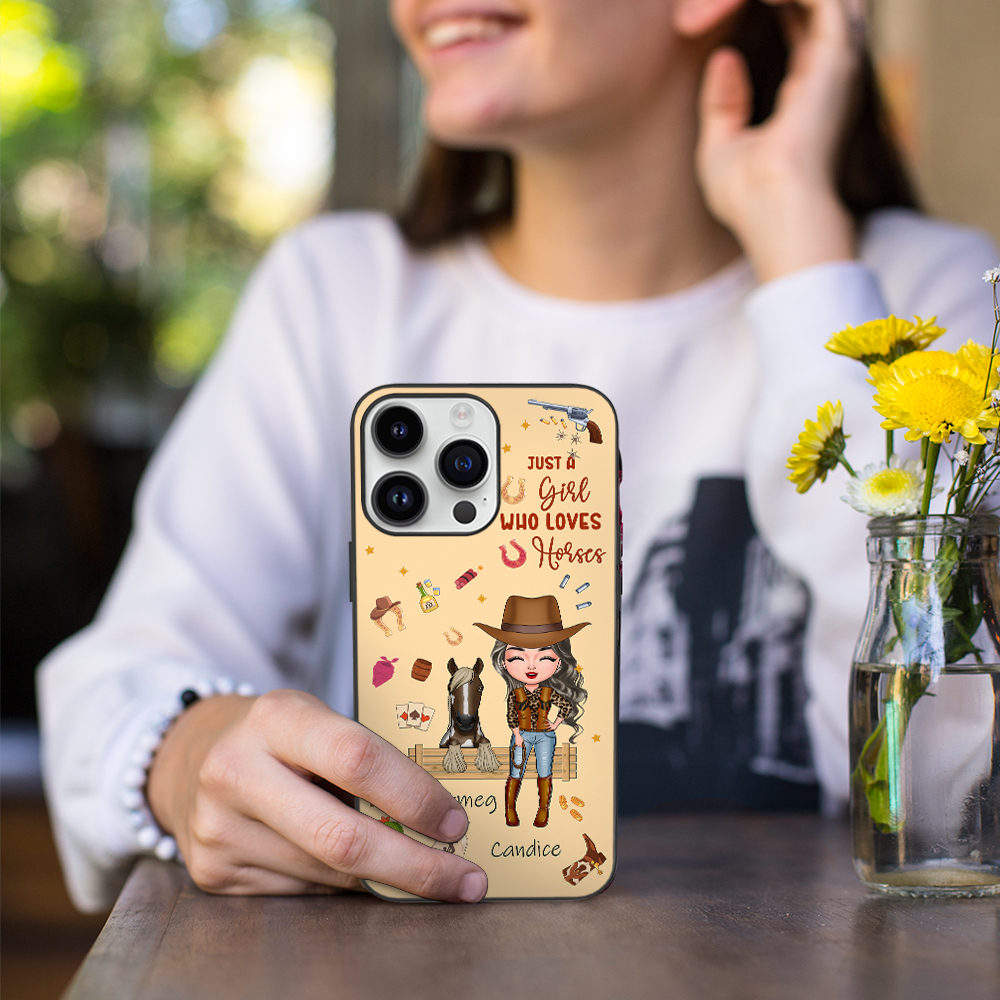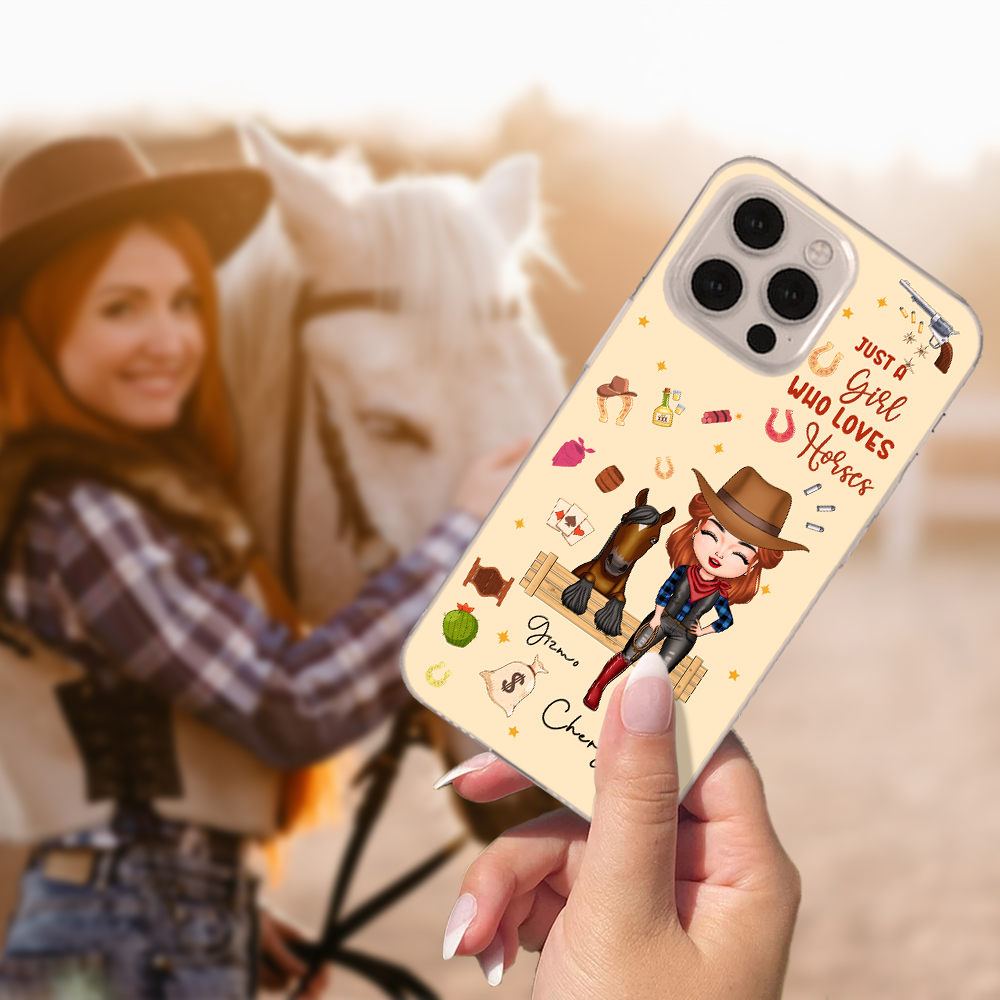 Customizable Design - This phone case features adorable clipart of a cowgirl and her horse, personalized with your name. And printed with the phrase “Just a girl who loves horses,” this design adds a heartfelt touch, celebrating the passion for equestrian life. It beautifully captures the bond between a girl and her beloved horse.